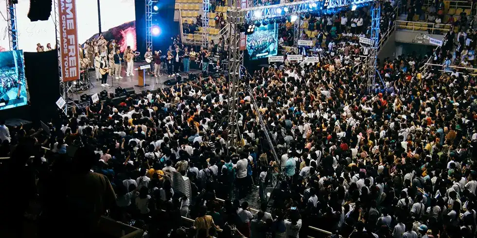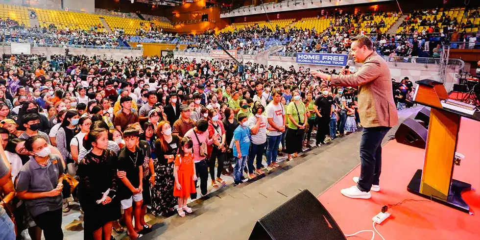 A Move of God in Cavite The Home Free Crusade in Cavite, held at the AATF Sports Complex, was marked by a powerful move of God as thousands gathered in person and online to hear the Gospel of Jesus Christ. Many responded in faith, publicly receiving Jesus as Lord and Savior, while thousands more followed Him through water baptism. This gathering reflected the heart of the Home Free Crusade—to proclaim salvation through Jesus alone. We thank God for what He has done in Cavite and give Him all the glory. Crusade Highlights: 25,064 in person | 28,797 online 8,097 accepted Jesus | 2,632 baptized